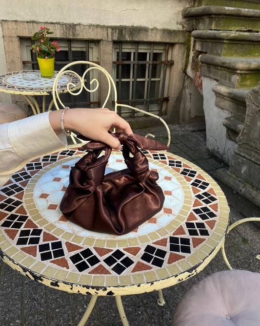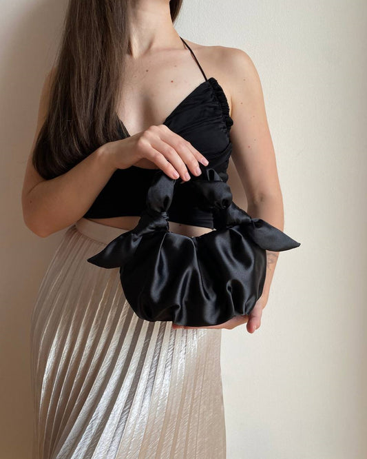 Beautiful bag with knots crafted from smooth silk satin. Woman bag is...