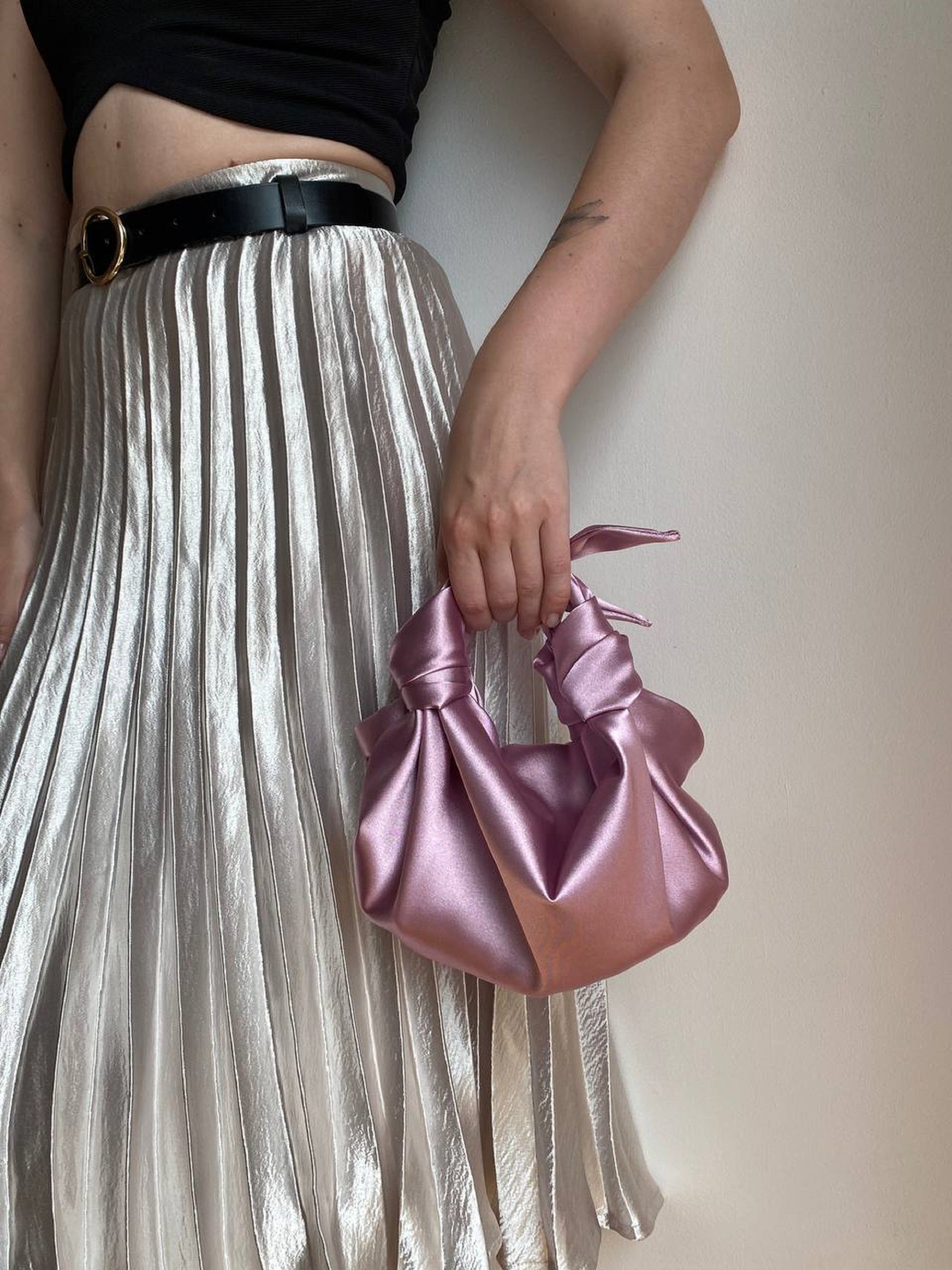 Beautiful bag with knots crafted from smooth silk satin. Woman bag is...