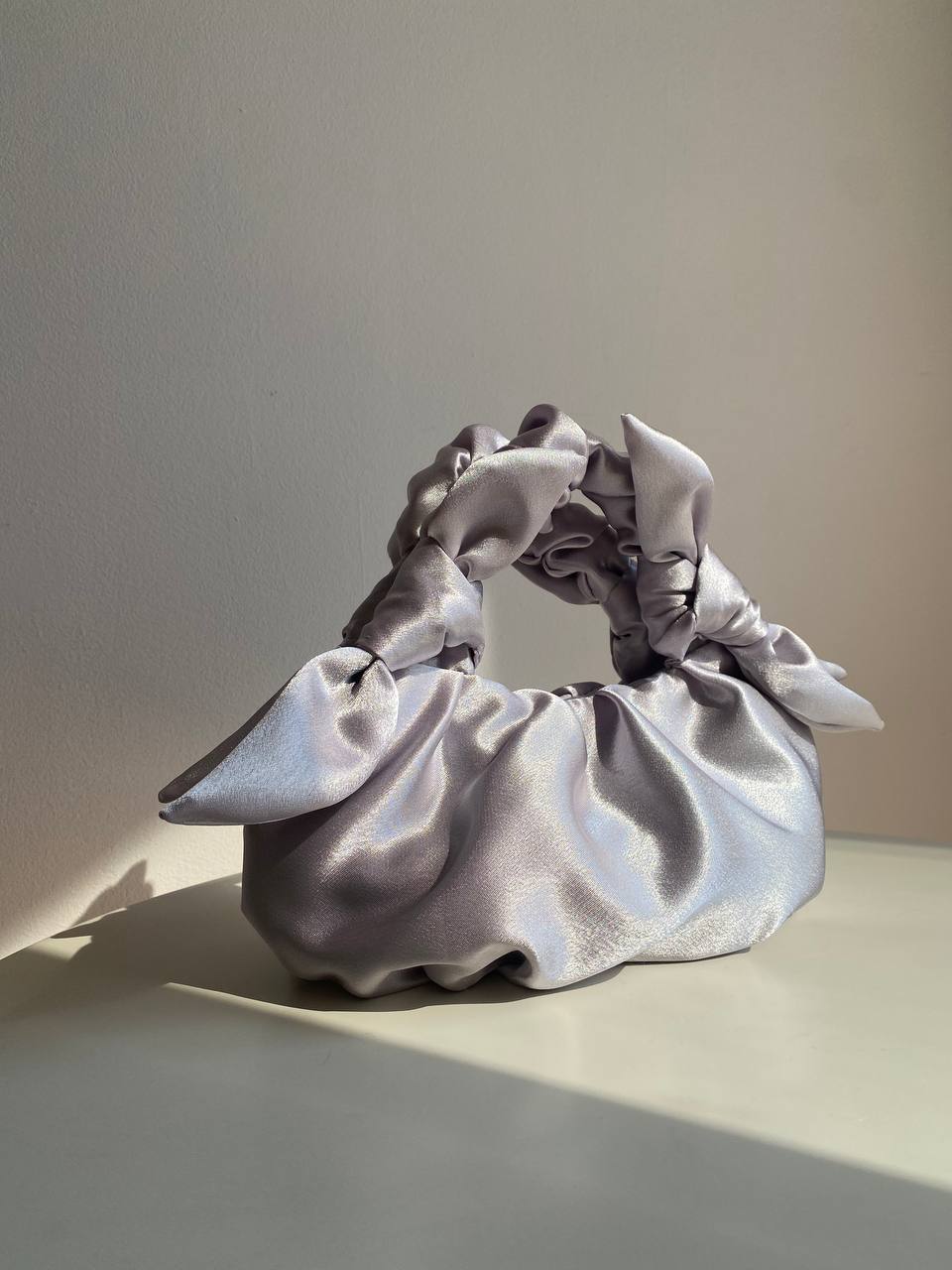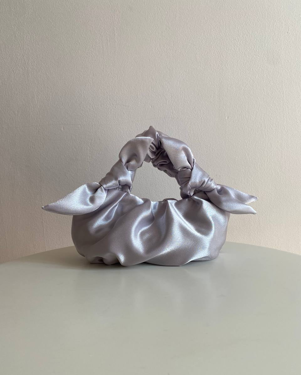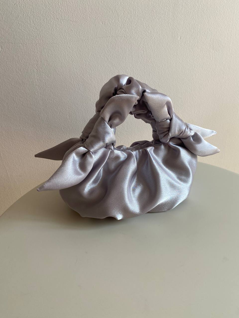 Beautiful bag with knots crafted from smooth satin. Woman bag is soft, but keeps its shape, closes with a magnetic button. Stylish satin bag is made in vintage style, based on the japanese technigue of tying a silk scarf in a bag. This cute little handbag is very versatile, it can be worn not only to formal events, it will add elegance to your most casual looks. Perfect wedding bag.