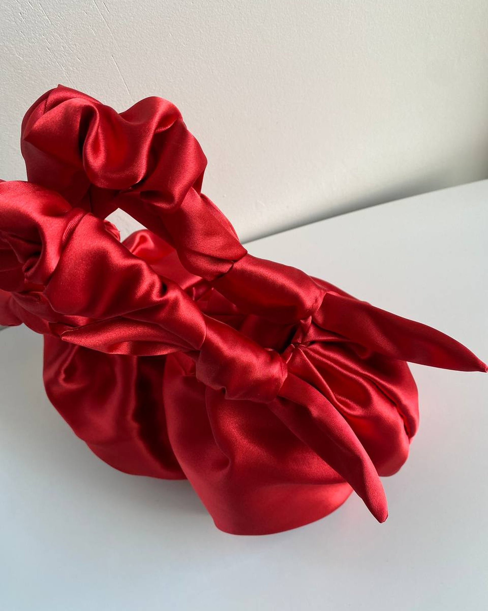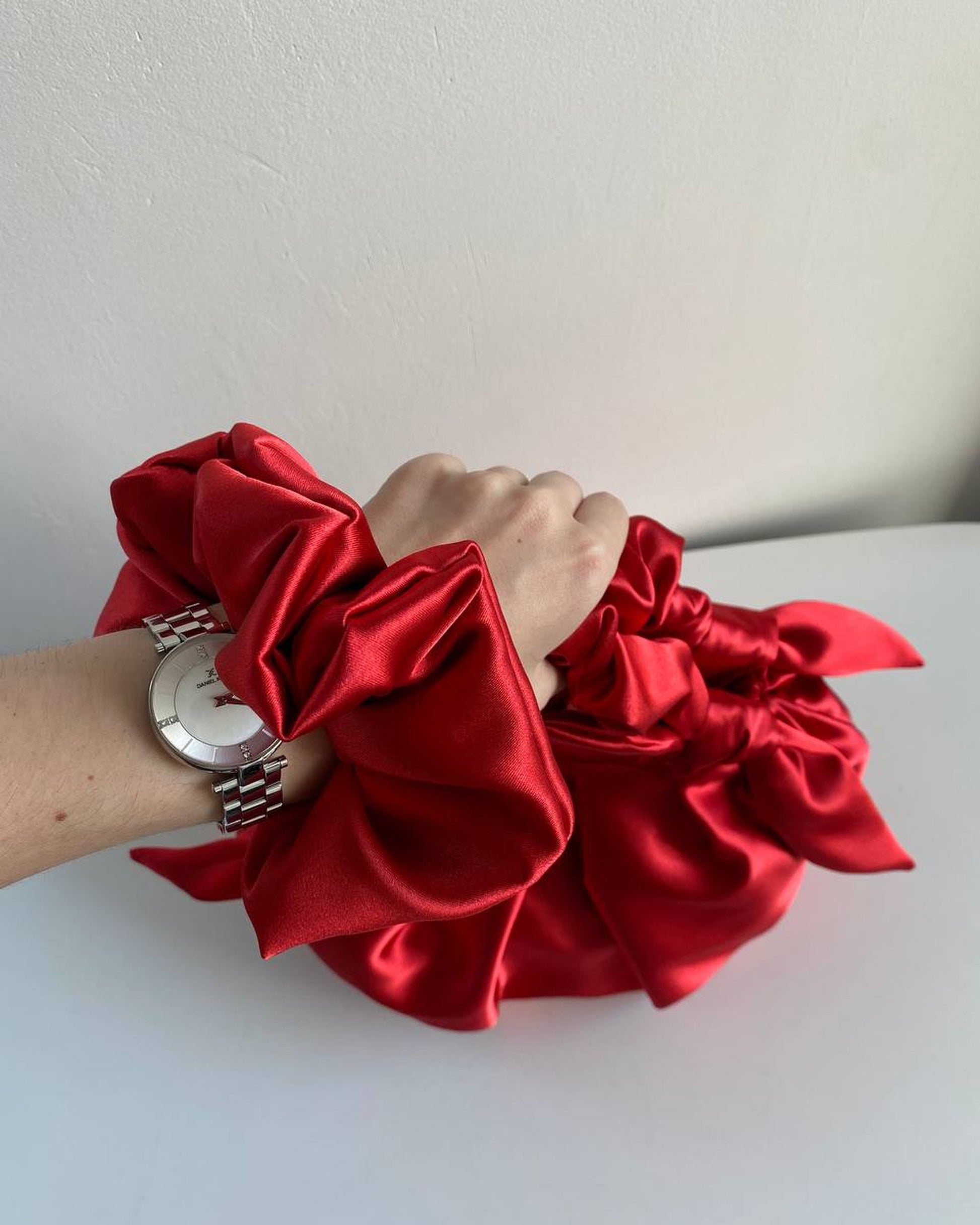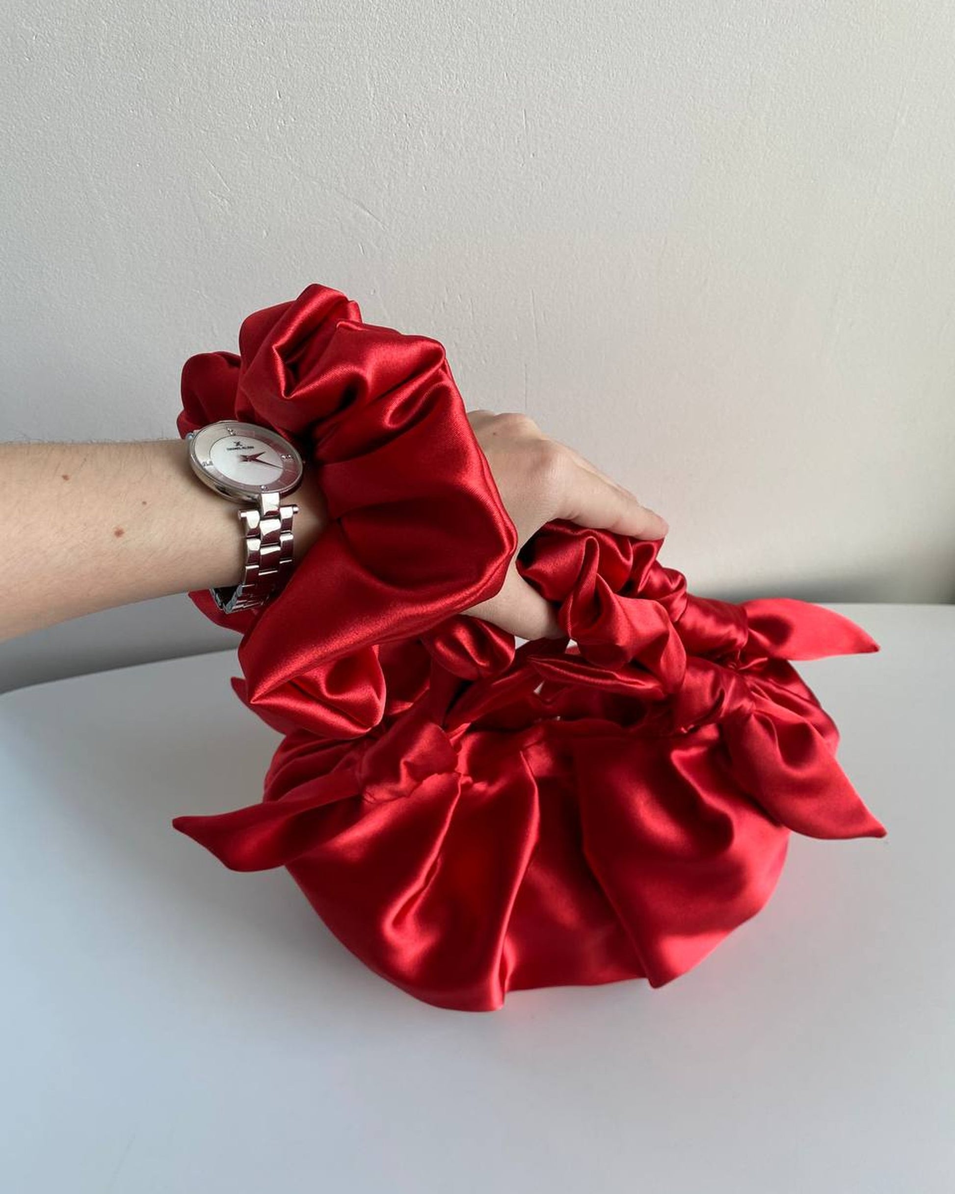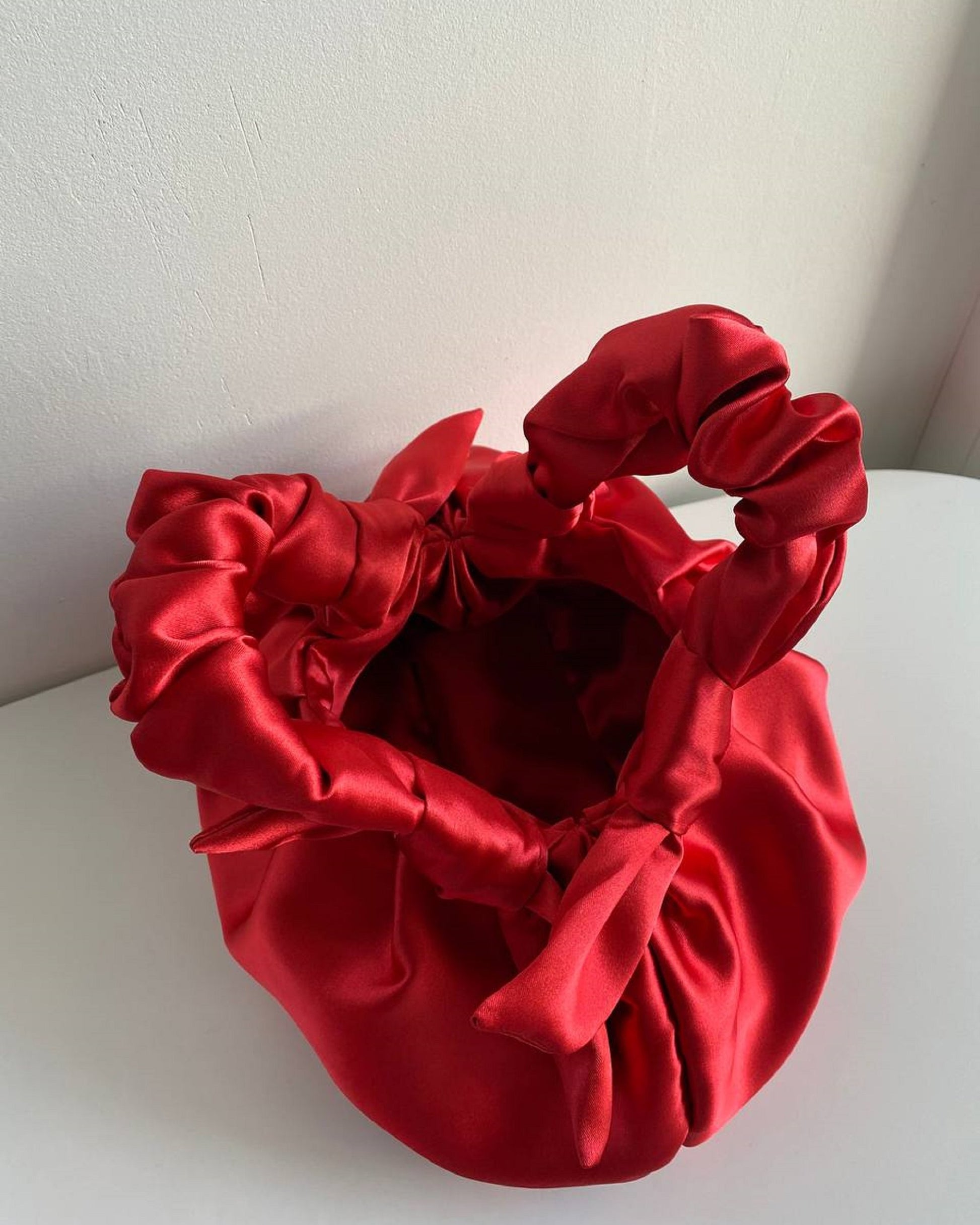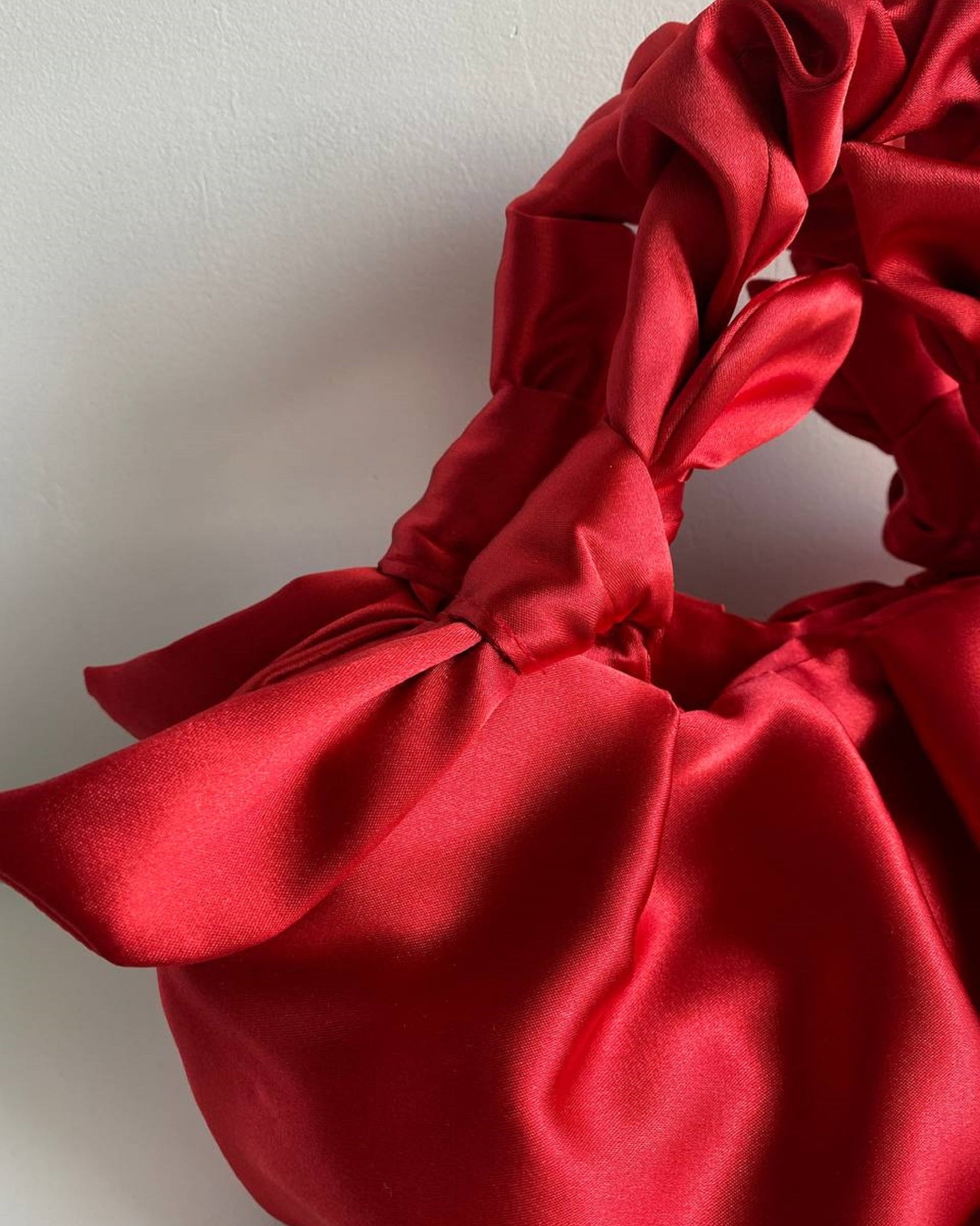 Beautiful bag with knots crafted from smooth satin. Woman bag is soft, but keeps its shape, closes with a magnetic button. Stylish satin bag is made in vintage style, based on the japanese technigue of tying a silk scarf in a bag. This cute little handbag is very versatile, it can be worn not only to formal events, it will add elegance to your most casual looks. Perfect wedding bag.