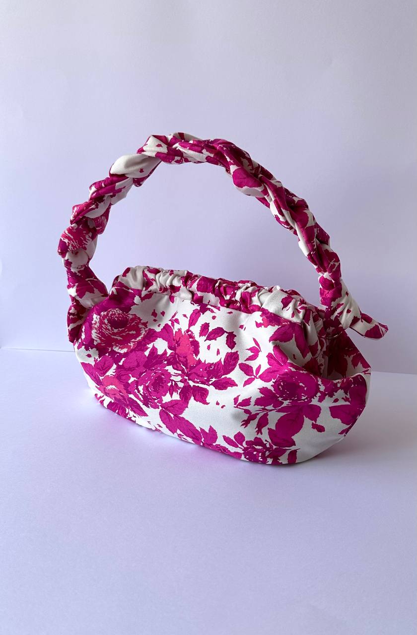Brighten your outfit with this handmade fuchsia floral bag! Versatile 30×20 cm design can be worn as a shoulder bag or clutch, with a handy interior pocket for essentials.
