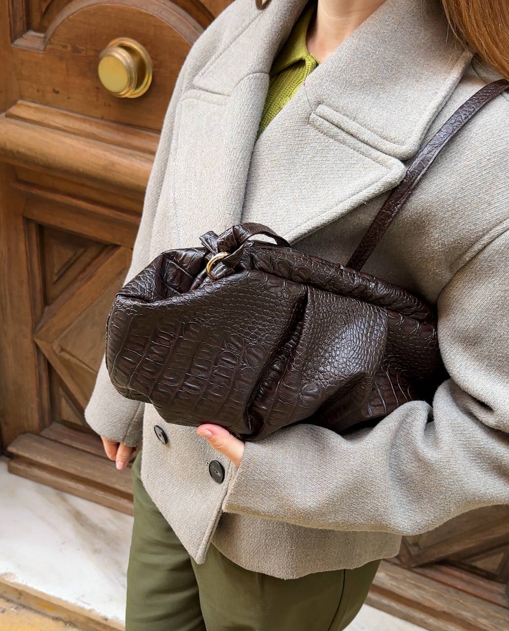 This unique handmade handbag is crafted from high-quality crocodile embossed leather and finished with a beautiful floral fabric lining inside. A perfect combination of elegance and character, this bag adds a stylish accent to everyday outfits and special occasions.